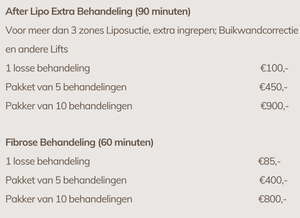 Wij bieden Afterlipo behandelingen aan huis, door heel Nederland en België. Vraag ons naar de mogelijkheden.