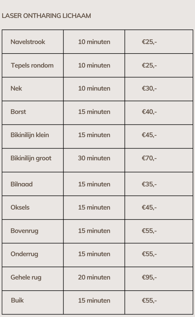 Als u nog vragen heeft over de prijzen van onze behandelingen, aarzel dan niet om contact met ons op te nemen.